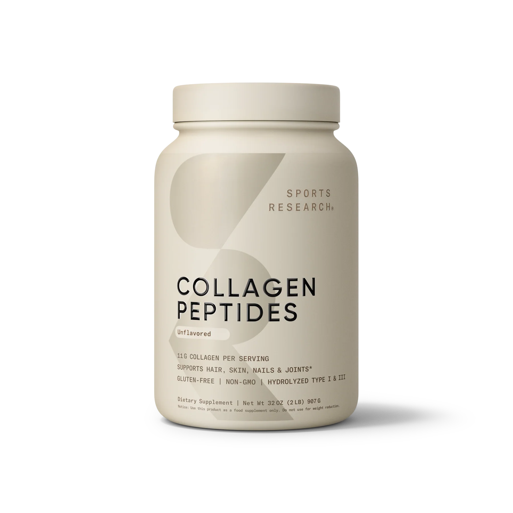 Meet your new morning ritual! Sports Research® Collagen Peptides is hydrolyzed so it combines into your favorite beverage and is more readily absorbed. Collagen is the most abundant protein in the human body, but did you know our bodies produce less and less as we age? This results in everything from wrinkles to joint issues and so much more. Having enough collagen ensures optimal function of everything from hair, skin and nails to joint health. With 11 grams of Type I & III collagen peptides per scoop and 18 amino acids— Sports Research® Hydrolyzed Collagen Peptides is the perfect workout recovery support so you can enjoy your Sport of Life longer and look your best doing it.*