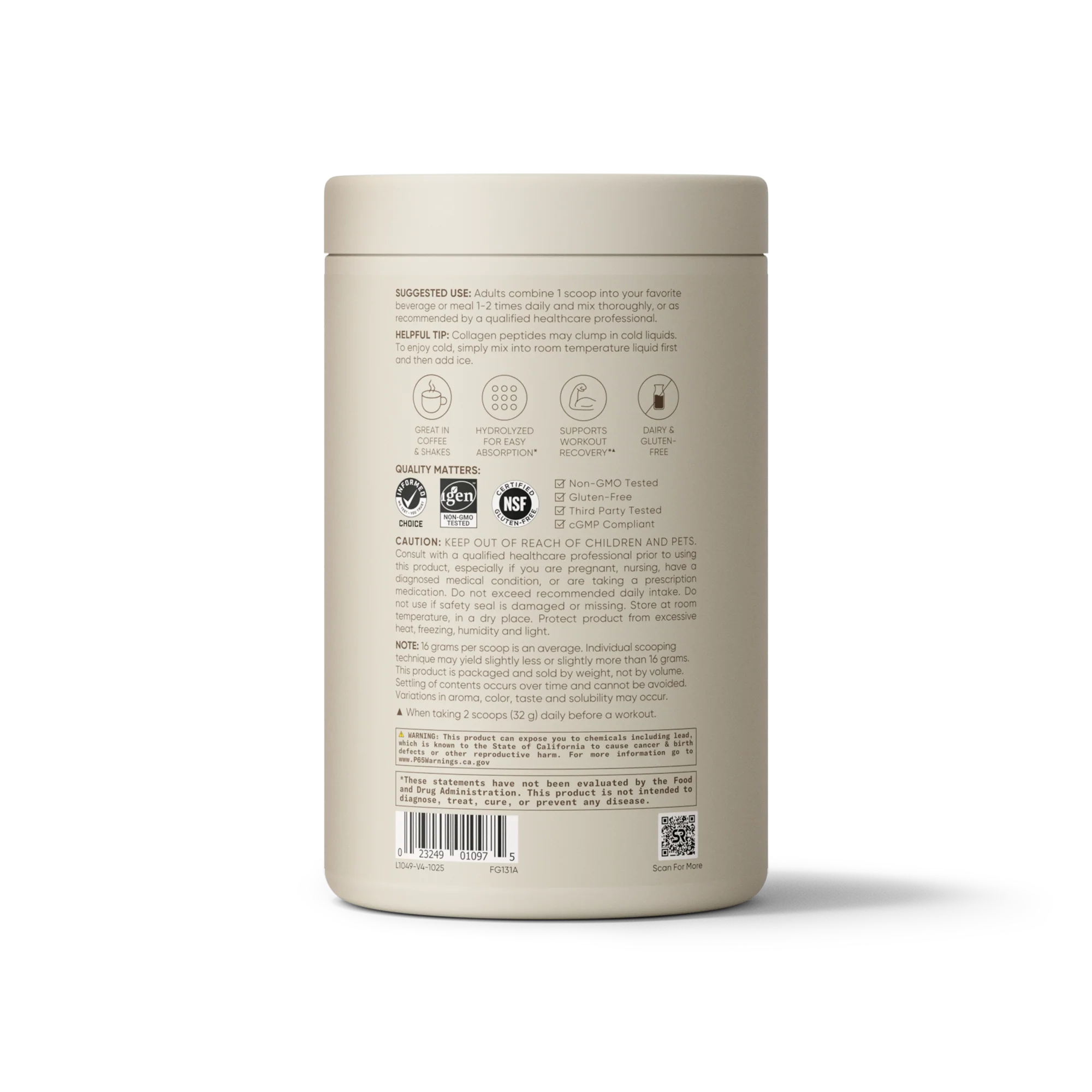 Meet your new morning ritual! Sports Research® Collagen Peptides is hydrolyzed so it combines into your favorite beverage and is more readily absorbed. Collagen is the most abundant protein in the human body, but did you know our bodies produce less and less as we age? This results in everything from wrinkles to joint pain and so much more. Having enough collagen ensures optimal function of everything from skin and nails to joint and bone health. With 11 grams of Type I & III collagen peptides per scoop and 18 amino acids— Sports Research® Hydrolyzed Collagen Peptides is the perfect workout recovery support so you can enjoy your Sport of Life longer and look your best doing it.*