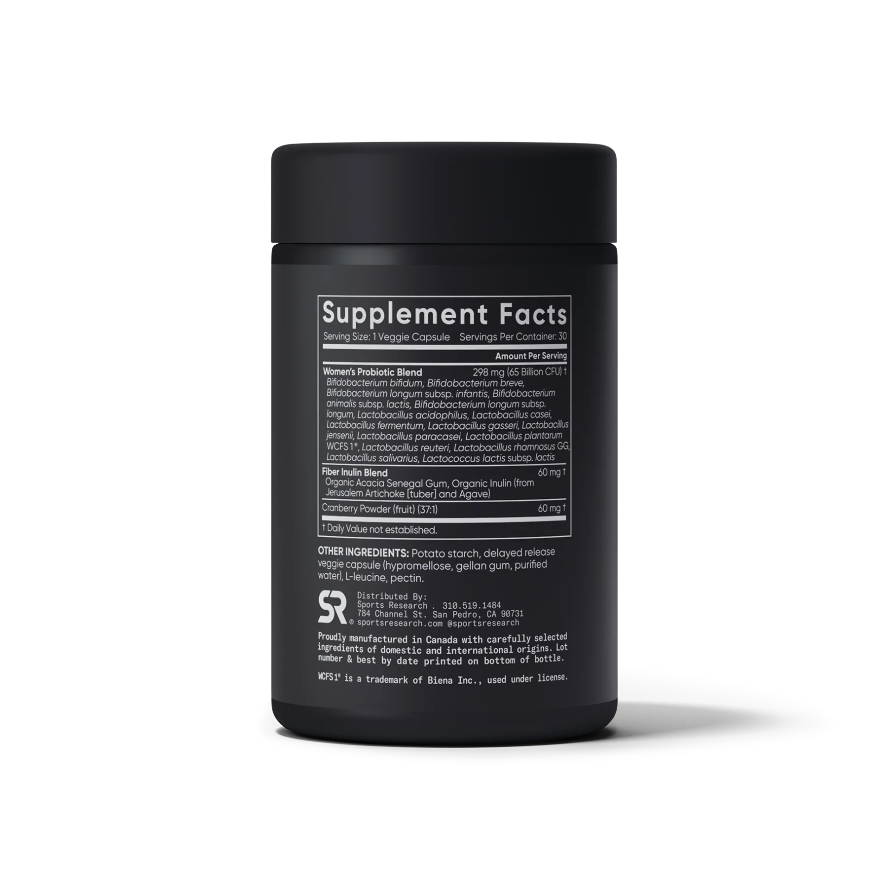 Say goodbye to digestive discomfort! Probiotics encompass live bacteria that is helpful for gut replenishing and restoring. Sports Research® Women’s Probiotics with Cranberry and Prebiotics are specially formulated for female health and to help replenish good bacteria in the gut. Encapsulated in delayed release veggie capsules, you just need one a day to gain this enhanced gut health support. Put digestion concerns in the past— we're here to promote good bacteria and support women’s daily gut balance, from the inside out.*